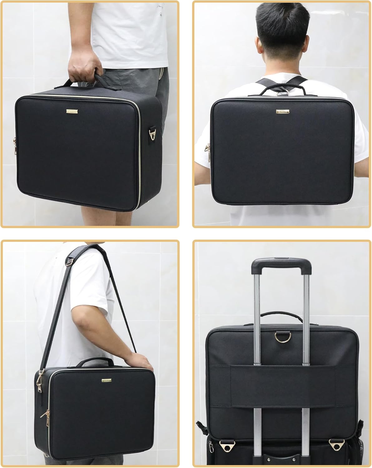 - Professional Makeup Artist Set Bag: The extra large makeup case size 17 inches x 12.6 inches x 7.7 inches (L x W x H), extra large capacity allows you to store all your essentials plus extra goodies. Several different compartments and pockets provide sensible storage for makeup artists. Good for fitting everything in one bag and is easy to go.