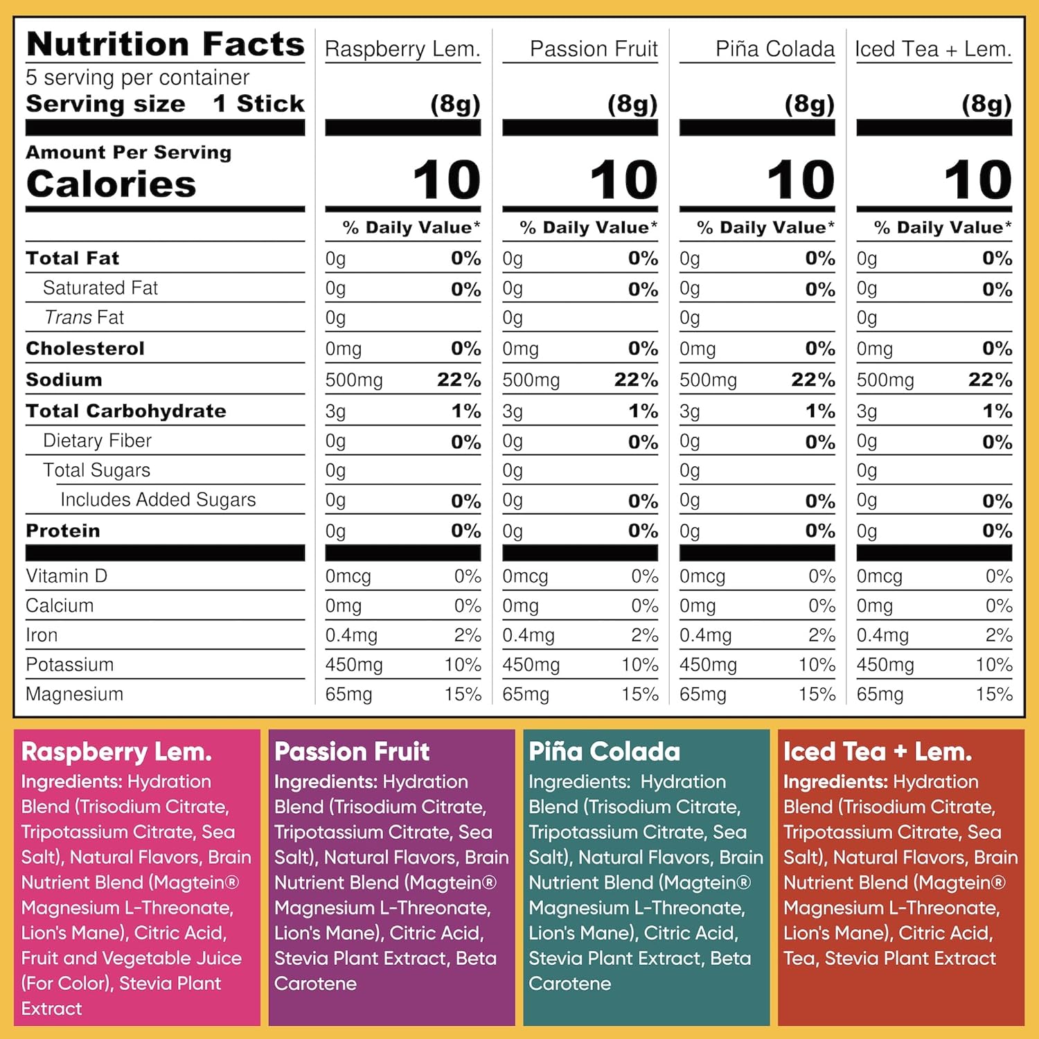 - DELICIOUS FLAVORS ON-THE-GO: Just mix one packet with 16oz of water for refreshing hydration anytime. Enjoy crave-worthy flavors like Blood Orange, Blueberry Pomegranate, Lemon Lime, Peach Mango, Raspberry Lemonade, Yuzu Mango, Iced Tea + Lemonade, Passion Fruit, Pina Colada, plus a convenient Variety Pack. A better-tasting, brain-boosting way to stay hydrated daily